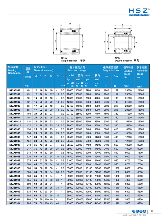 海山轴承有限公司专业生产四大类轴承